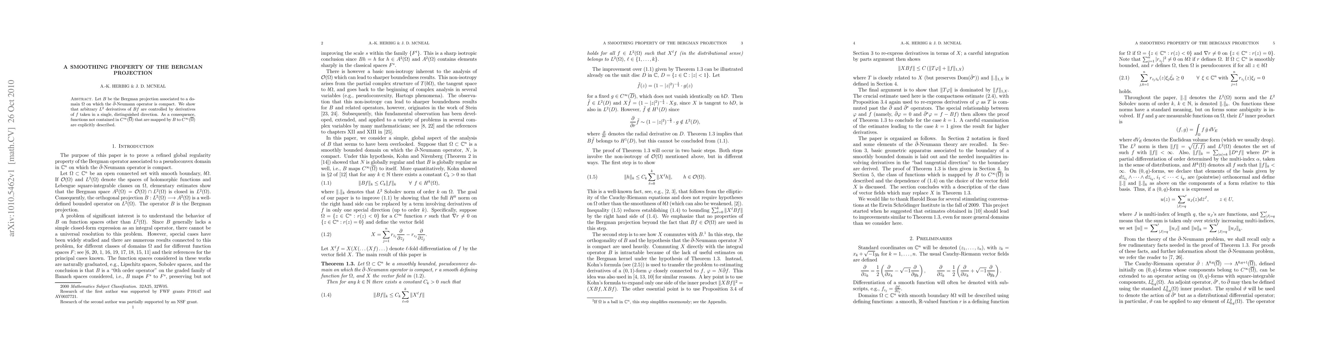 This paper demonstrates that the Bergman projection B, under certain conditions, smooths functions in a specific direction, controlling higher-order L^2 derivatives of Bf by derivatives of f in that direction. It also characterizes functions that remain smooth up to the boundary despite initial boundary irregularities.