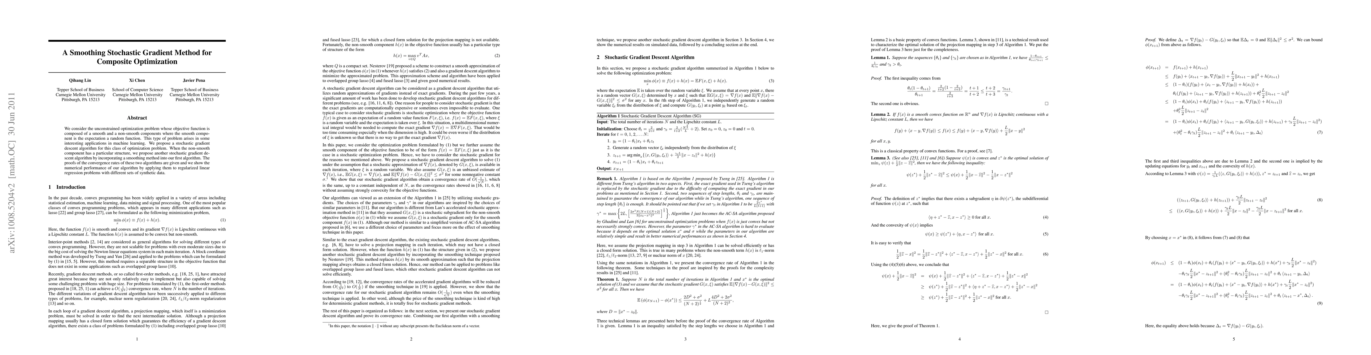 This paper proposes two stochastic gradient descent algorithms for optimizing composite functions with smooth and non-smooth components, particularly applicable in machine learning. The second algorithm incorporates a smoothing method to improve performance, and both algorithms' convergence rates are proven and tested numerically on regularized linear regression problems.
