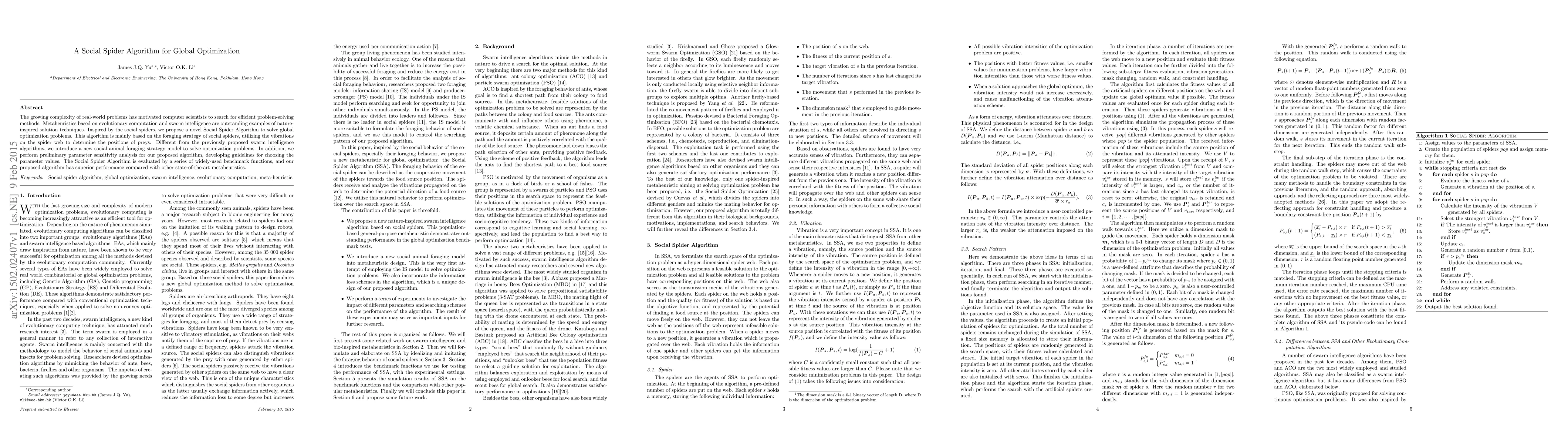 The paper proposes a novel Social Spider Algorithm inspired by social spiders' foraging behavior, demonstrating superior performance in solving global optimization problems compared to other metaheuristics. Preliminary parameter sensitivity analysis provides guidelines for optimal parameter selection.