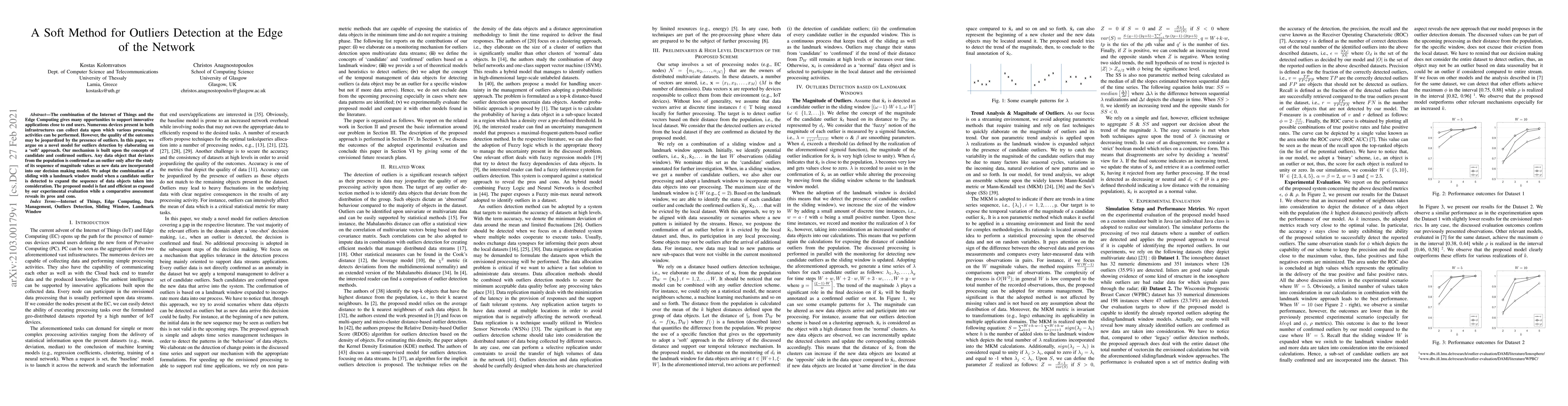 The combination of the Internet of Things and the Edge Computing gives many opportunities to support innovative applications close to end users. Numerous devices present in both infrastructures can collect data upon which various processing activities can be performed. However, the quality of the outcomes may be jeopardized by the presence of outliers. In this paper, we argue on a novel model for outliers detection by elaborating on a `soft' approach. Our mechanism is built upon the concepts of candidate and confirmed outliers. Any data object that deviates from the population is confirmed as an outlier only after the study of its sequence of magnitude values as new data are incorporated into our decision making model. We adopt the combination of a sliding with a landmark window model when a candidate outlier is detected to expand the sequence of data objects taken into consideration. The proposed model is fast and efficient as exposed by our experimental evaluation while a comparative assessment reveals its pros and cons.