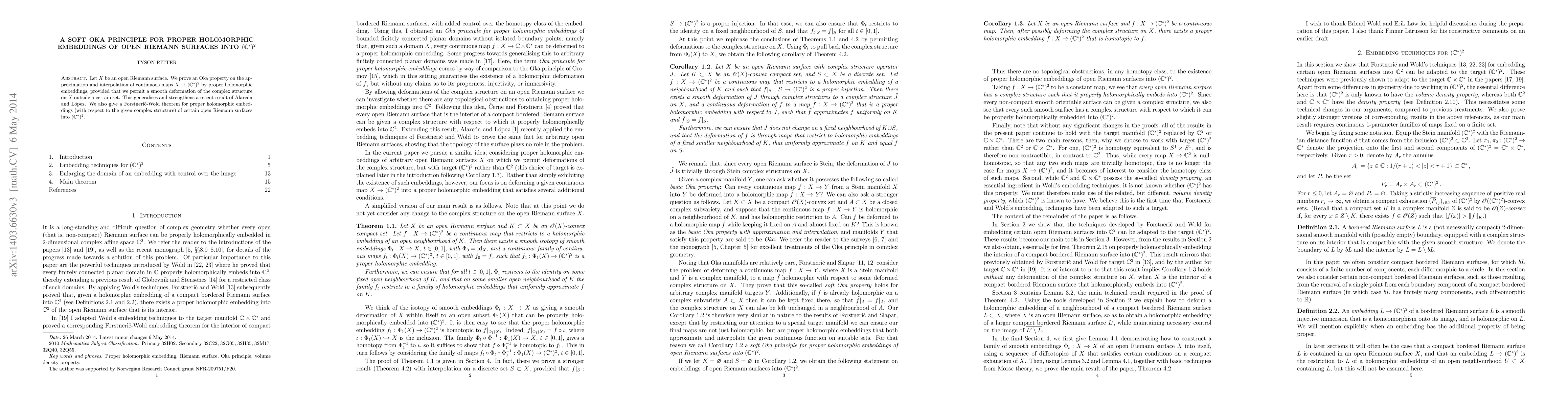 This paper proves an Oka principle for approximating continuous maps from an open Riemann surface to $(\mathbb{C}^*)^2$ using proper holomorphic embeddings, allowing for a smooth deformation of the surface's complex structure outside a specified set. It also extends a recent result and provides a Forstneric-Wold theorem for such embeddings.