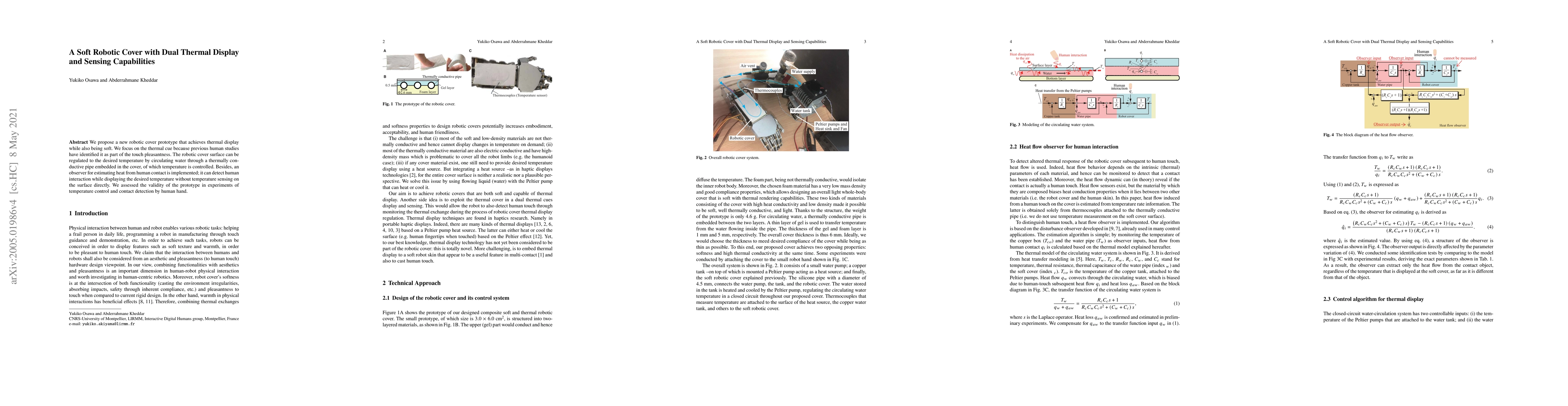 This paper introduces a soft robotic cover that can display and sense temperature through a thermally conductive pipe and an embedded observer, enhancing touch pleasantness. Experiments validated its temperature regulation and contact detection capabilities.