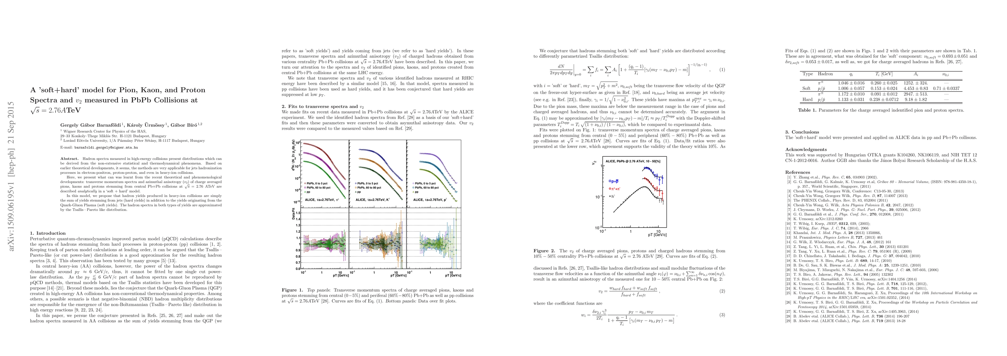 Hadron spectra measured in high-energy collisions present distributions which can be derived from the non-extensive statistical and thermodynamical phenomena. Based on earlier theoretical developments, it seems, the methods are very applicable for jets hadronization processes in electron-positron, proton-proton, and even in heavy-ion collisions. Here, we present what can was learnt from the recent theoretical and phenomenological developments: transverse momentum spectra and azimuthal anisotropy ($v_2$) of charge averaged pions, kaons and protons stemming from central Pb+Pb collisions at $\sqrt s$ = 2.76 ATeV are described \textit{analytically} in a `soft + hard' model. In this model, we propose that hadron yields produced in heavy-ion collisions are simply the sum of yields stemming from jets (hard yields) in addition to the yields originating from the Quark-Gluon Plasma (soft yields). The hadron spectra in both types of yields are approximated by the Tsallis--Pareto like distribution.