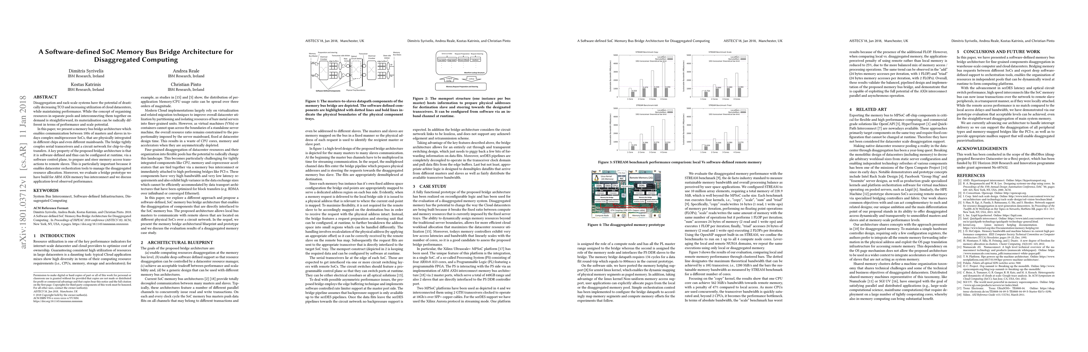 A software-defined memory bus bridge architecture was designed and implemented for fine-grained components disaggregation in warehouse-scale computers and cloud data centers.