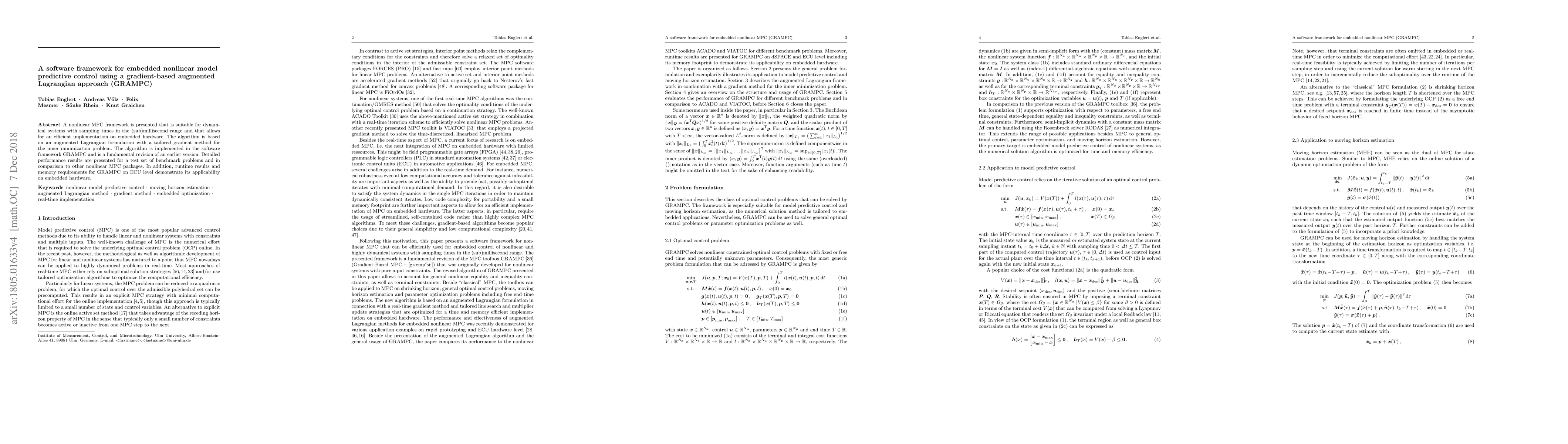 This paper introduces GRAMPC, a software framework for embedded nonlinear model predictive control using an augmented Lagrangian approach. The framework efficiently implements gradient-based optimization on embedded hardware, demonstrating superior performance and lower resource usage compared to other nonlinear MPC packages.