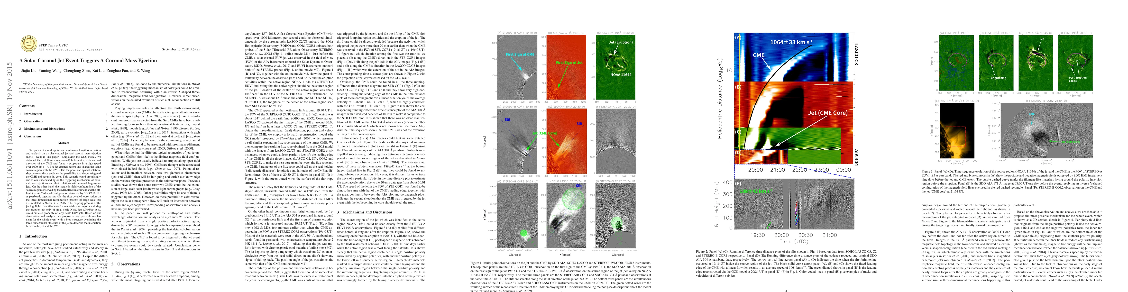 This paper investigates a solar coronal jet and its potential triggering of a coronal mass ejection (CME), using multi-point and multi-wavelength observations. The analysis suggests that the jet, which erupted before the CME, shares the same source region, indicating a possible causal relationship.