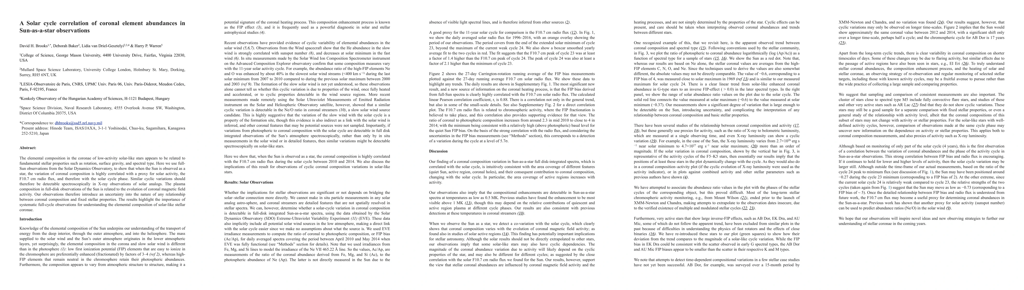 This study reveals a solar cycle correlation in coronal element abundances when observing the Sun as a star, showing that variations in coronal composition are linked to solar activity phases, as indicated by the F10.7 cm radio flux. These findings suggest that similar cyclic variations could be detected in solar analogs, complicating the relationship between coronal composition and stellar properties.