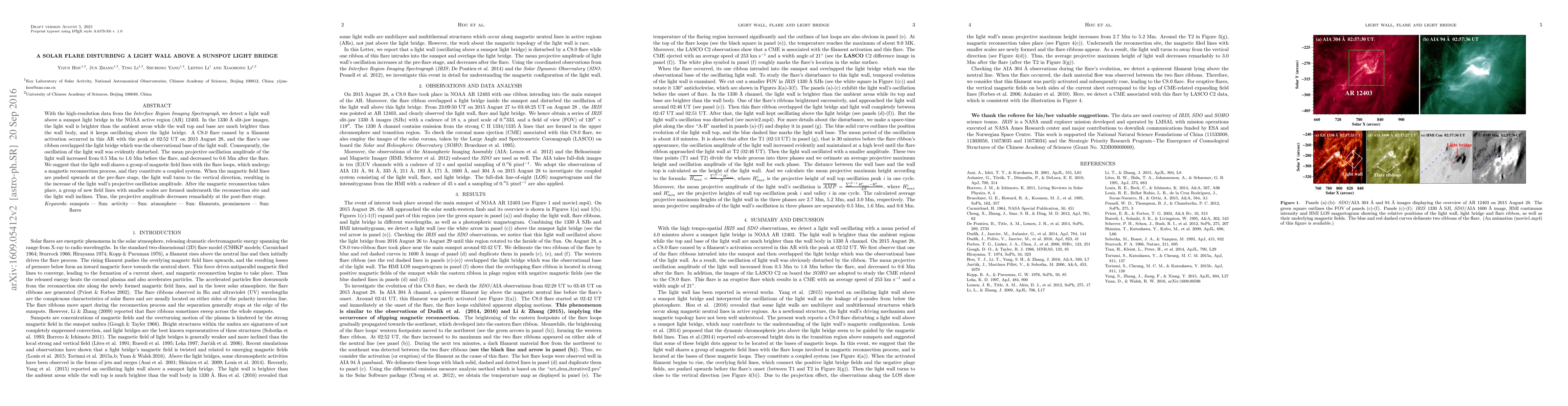 This study observes a light wall above a sunspot light bridge using high-resolution data, noting its oscillation disturbed by a C8.0 solar flare. The oscillation amplitude increased before the flare and decreased afterward, suggesting a magnetic reconnection process linking the light wall and flare loops.