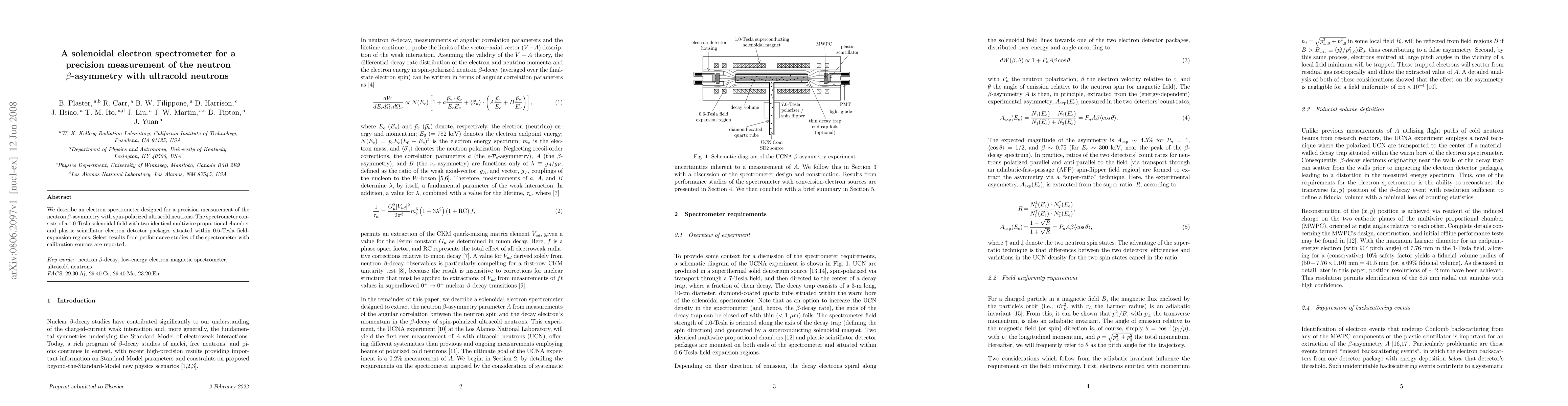This paper details a solenoidal electron spectrometer designed to measure neutron β-asymmetry with ultracold neutrons, featuring a 1.0-Tesla solenoidal field and dual detection packages, and reports initial performance results from calibration studies.