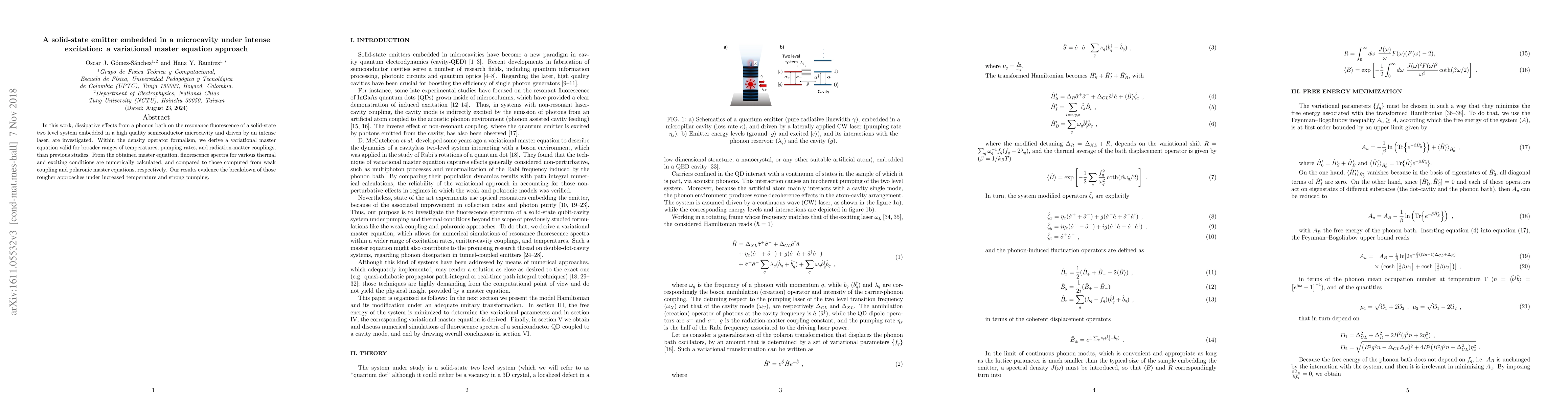 This paper investigates the effects of a phonon bath on a solid state emitter in a microcavity under intense laser excitation, deriving a variational master equation that applies to a wider range of conditions. The study finds that traditional weak coupling and polaronic models fail under high temperatures and strong pumping.