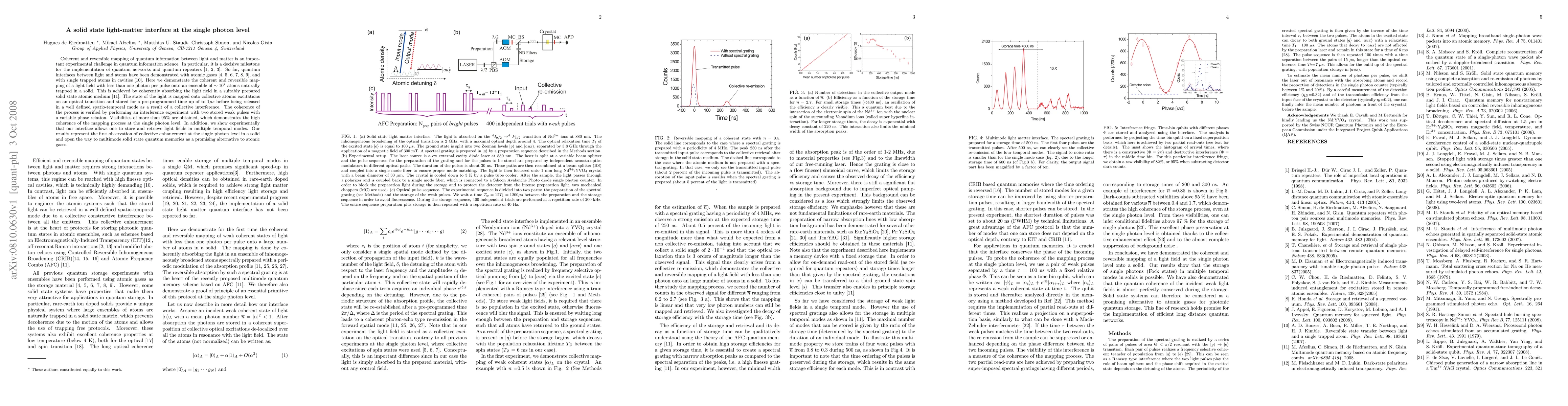 This paper demonstrates a solid-state light-matter interface capable of coherently mapping single photons onto an ensemble of 10 million atoms in a solid, achieving high coherence verified by interference experiments with visibilities over 95%. This breakthrough paves the way for multimode solid-state quantum memories, offering a promising alternative to atomic gas-based systems.