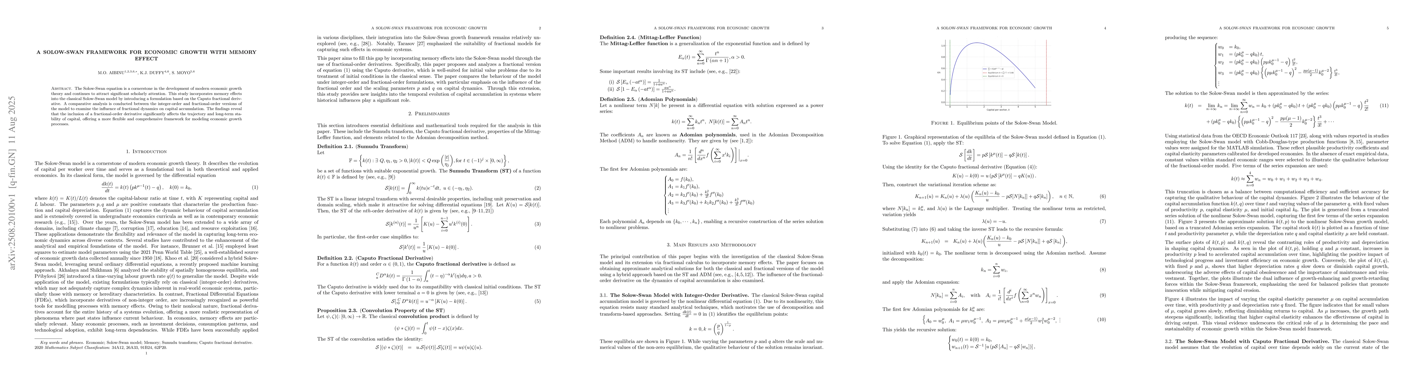 The Solow-Swan equation is a cornerstone in the development of modern economic growth theory and continues to attract significant scholarly attention. This study incorporates memory effects into the classical Solow-Swan model by introducing a formulation based on the Caputo fractional derivative. A comparative analysis is conducted between the integer-order and fractional-order versions of the model to examine the influence of fractional dynamics on capital accumulation. The findings reveal that the inclusion of a fractional-order derivative significantly affects the trajectory and long-term stability of capital, offering a more flexible and comprehensive framework for modeling economic growth processes.