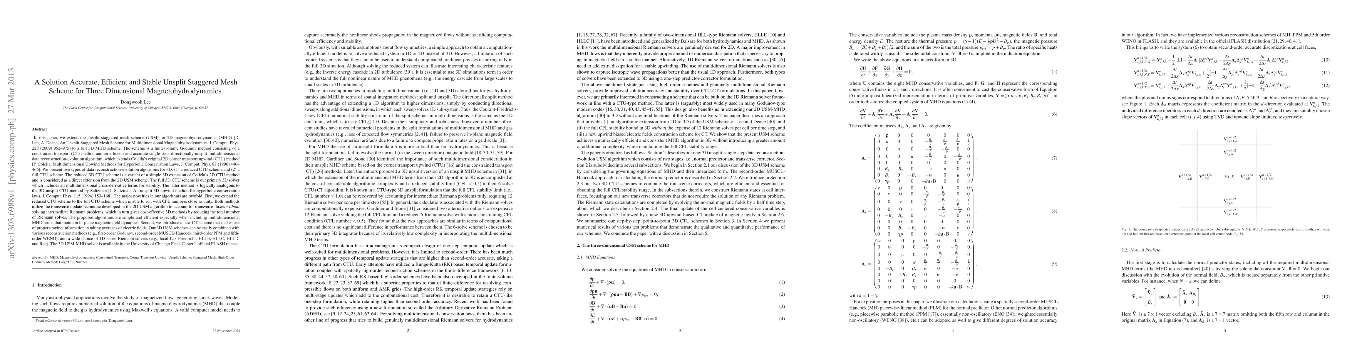 This paper extends the unsplit staggered mesh scheme for 2D magnetohydrodynamics to a 3D finite-volume Godunov method, introducing two types of data reconstruction algorithms: a reduced CTU scheme and a full CTU scheme, the latter maintaining stability and efficiency by minimizing Riemann solves.