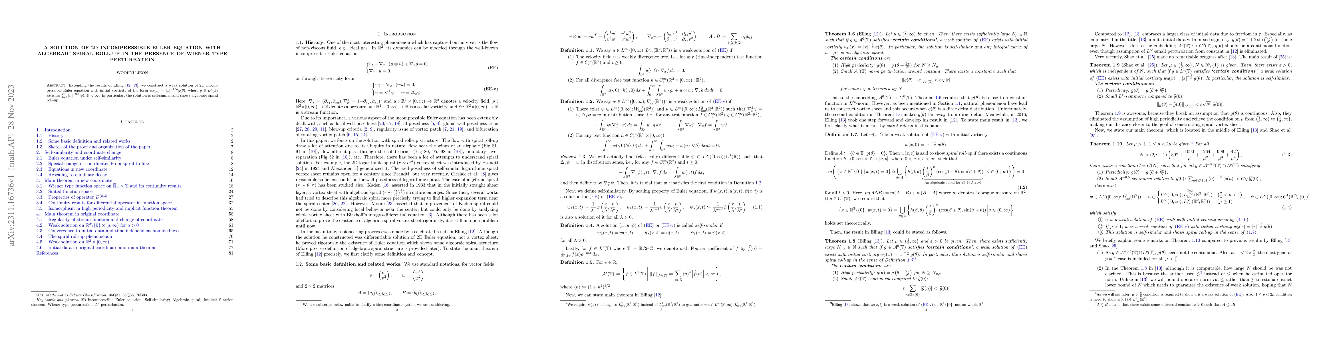 This paper constructs a weak solution of the 2D incompressible Euler equation with initial vorticity exhibiting algebraic spiral roll-up, extending previous results by Elling. The solution is self-similar and influenced by a Wiener type perturbation.