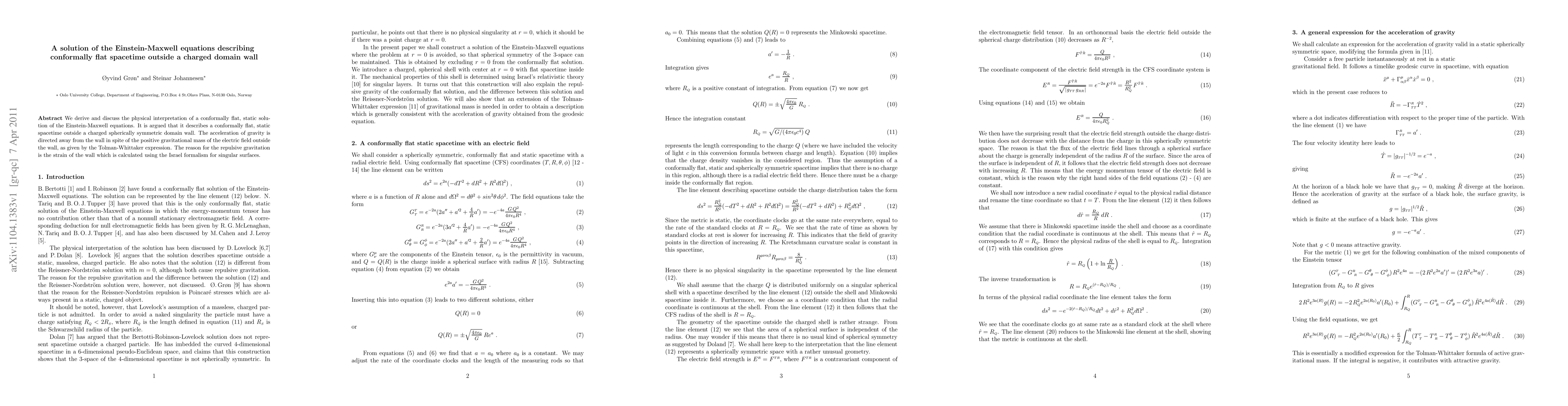 Researchers derived a solution to the Einstein-Maxwell equations describing conformally flat spacetime outside a charged domain wall, finding that gravity is repulsed despite the presence of electric field mass.