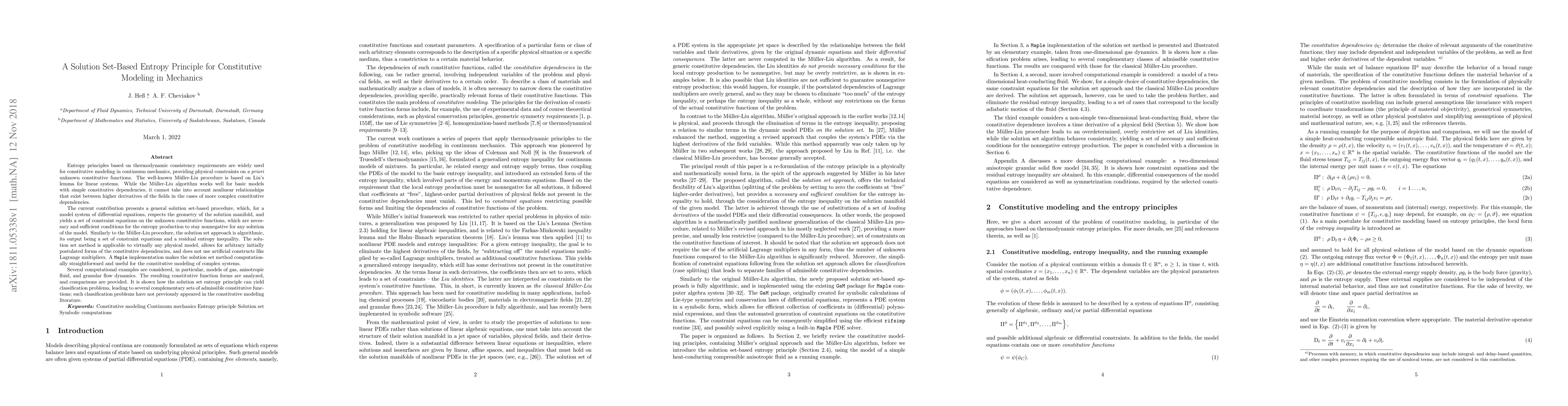 Researchers introduce a new entropy principle for constitutive modeling in mechanics that can handle nonlinear relationships between field derivatives, offering a flexible solution set-based approach to constraining constitutive functions and improving the accuracy of physical models.