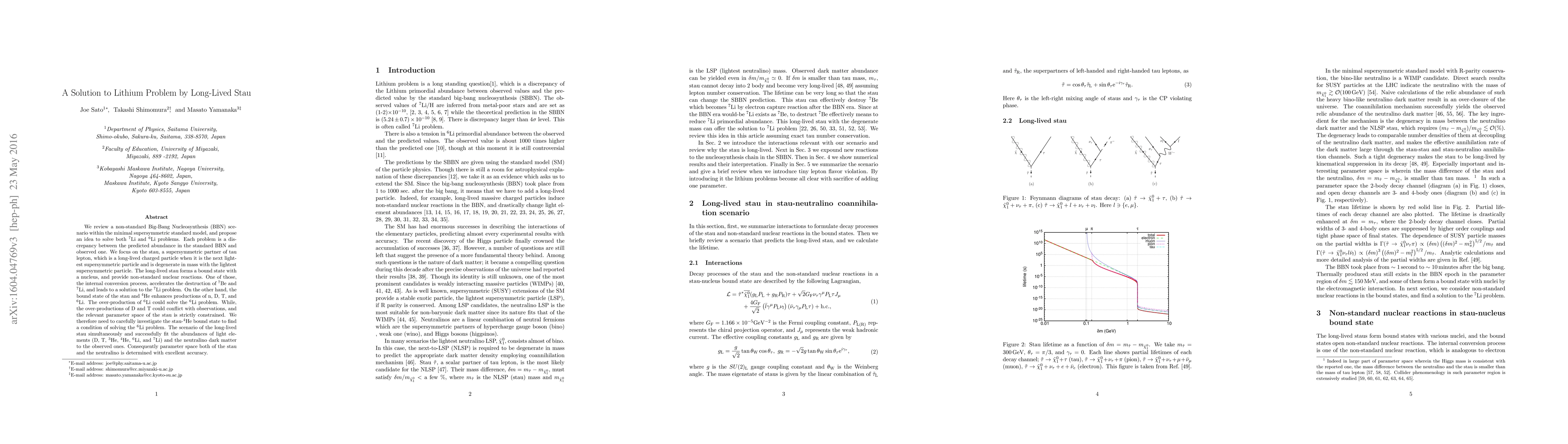 We review a non-standard Big-Bang nucleosynthesis (BBN) scenario within the minimal supersymmetric standard model, and propose an idea to solve both ${}^{7}$Li and ${}^{6}$Li problems. Each problem is a discrepancy between the predicted abundance in the standard BBN and observed one. We focus on the stau, a supersymmetric partner of tau lepton, which is a long-lived charged particle when it is the next lightest supersymmetric particle and is degenerate in mass with the lightest supersymmetric particle. The long-lived stau forms a bound state with a nucleus, and provide non-standard nuclear reactions. One of those, the internal conversion process, accelerates the destruction of ${}^{7}$Be and ${}^{7}$Li, and leads to a solution to the ${}^{7}$Li problem. On the other hand, the bound state of the stau and ${}^{4}$He enhances productions of n, d, t, and ${}^{6}$Li. The over-production of ${}^{6}$Li could solve the ${}^{6}$Li problem. While, the over-productions of d and t could conflict with observations, and the relevant parameter space of the stau is strictly constrained. We therefore need to carefully investigate the stau-${}^{4}$He bound state to find a condition of solving the ${}^{6}$Li problem. The scenario of the long-lived stau simultaneously and successfully fit the abundances of light elements (d, t, ${}^{3}$He, ${}^{4}$He, ${}^{6}$Li, and ${}^{7}$Li) and the neutralino dark matter to the observed ones. Consequently parameter space both of the stau and the neutralino is determined with excellent accuracy.