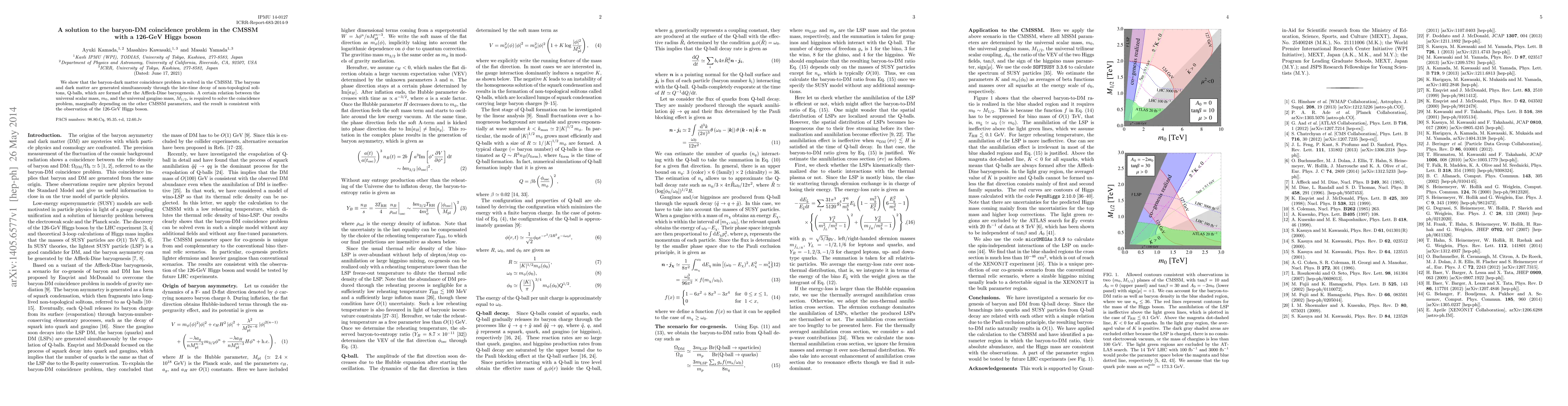 We show that the baryon-dark matter coincidence problem is solved in the CMSSM. The baryons and dark matter are generated simultaneously through the late-time decay of non-topological solitons, Q-balls, which are formed after the Affleck-Dine baryogenesis. A certain relation between the universal scalar mass, $m_0$, and the universal gaugino mass, $M_{1/2}$, is required to solve the coincidence problem, marginally depending on the other CMSSM parameters, and the result is consistent with the observation of the 126-GeV Higgs boson.