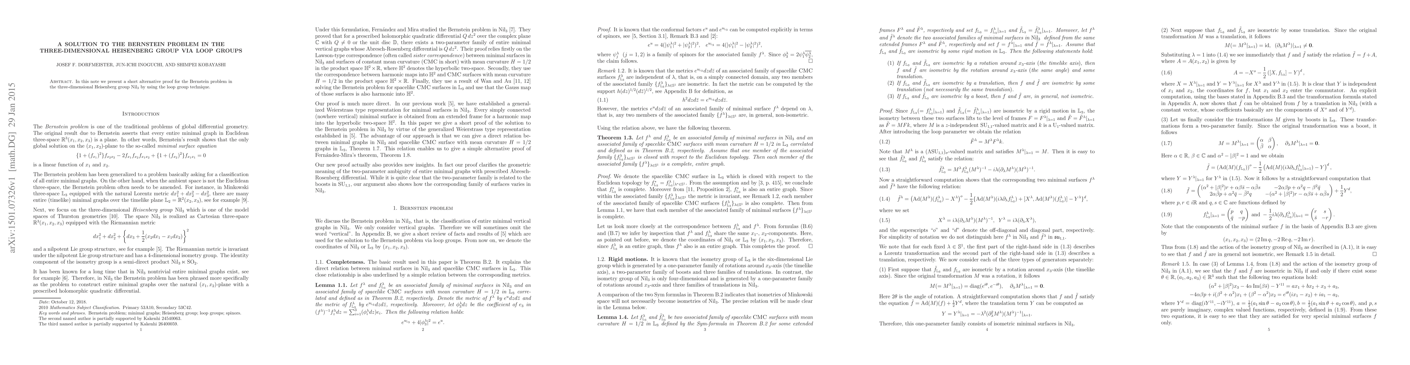 Researchers provide a new solution to the Bernstein problem in 3D Heisenberg group using loop groups, offering an alternative proof for this long-standing mathematical puzzle.