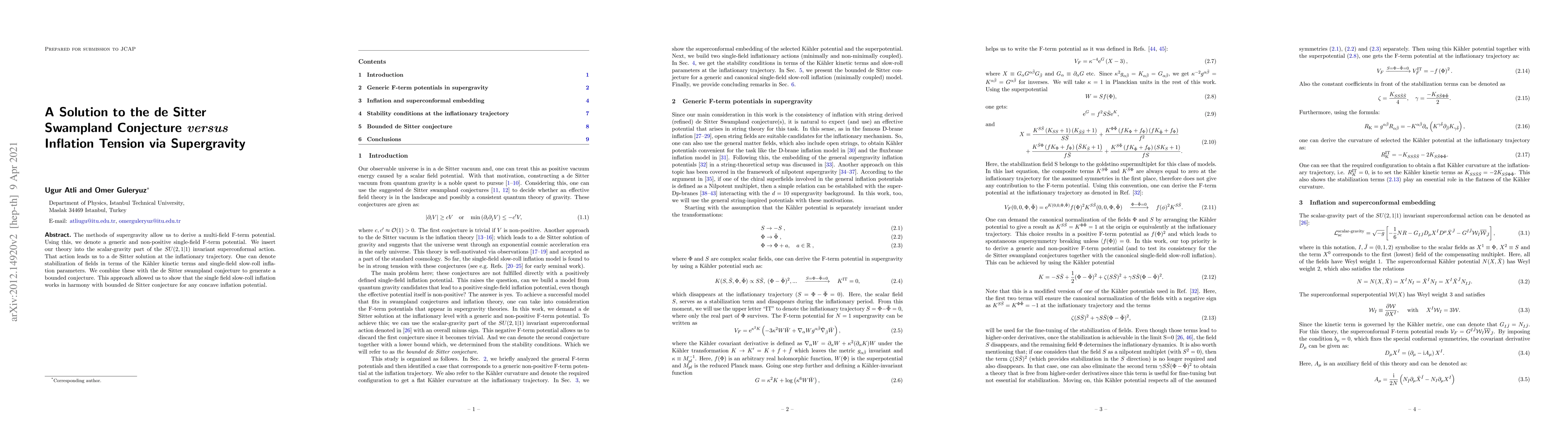 This paper utilizes supergravity to derive a multi-field F-term potential and integrates it into the $SU(2,1|1)$ invariant superconformal action to achieve a de Sitter solution compatible with inflation. The study demonstrates that single-field slow-roll inflation aligns with the de Sitter swampland conjecture for any concave potential.