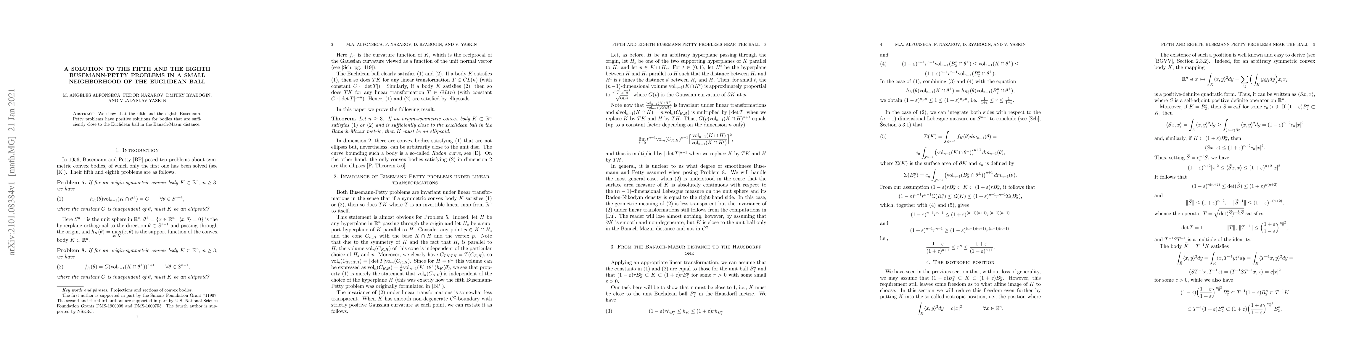 Researchers solved the Fifth and Eighth Busemann-Petty problems in a small neighborhood of the Euclidean ball, showing positive solutions for bodies that are sufficiently close to the ball in Banach-Mazur distance.
