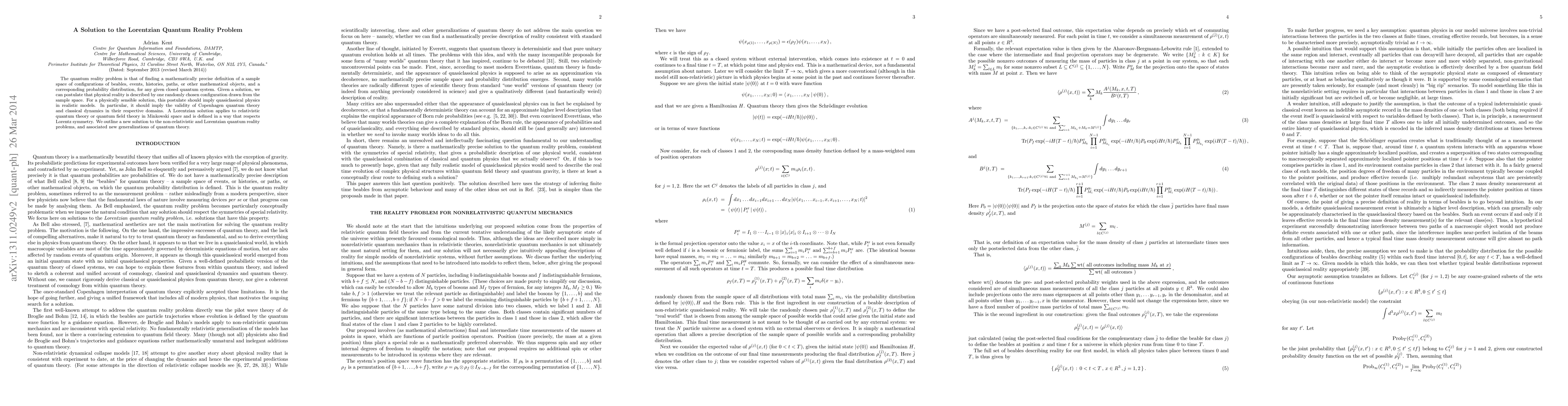 The quantum reality problem is that of finding a mathematically precise definition of a sample space of configurations of beables, events, histories, paths, or other mathematical objects, and a corresponding probability distribution, for any given closed quantum system. Given a solution, we can postulate that physical reality is described by one randomly chosen configuration drawn from the sample space. For a physically sensible solution, this postulate should imply quasiclassical physics in realistic models. In particular, it should imply the validity of Copenhagen quantum theory and classical dynamics in their respective domains. A Lorentzian solution applies to relativistic quantum theory or quantum field theory in Minkowski space and is defined in a way that respects Lorentz symmetry. We outline a new solution to the non-relativistic and Lorentzian quantum reality problems, and associated new generalizations of quantum theory.