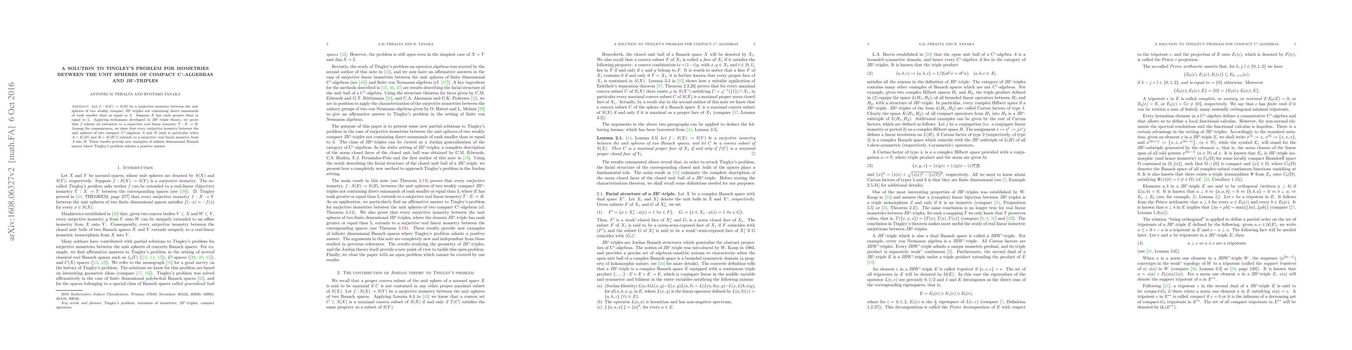 This paper proves that surjective isometries between the unit spheres of certain JB$^*$-triples extend to surjective real linear isometries between the full spaces, addressing Tingley's problem in the context of compact C$^*$-algebras. The results demonstrate that Tingley's problem has a positive solution for infinite dimensional Banach spaces.