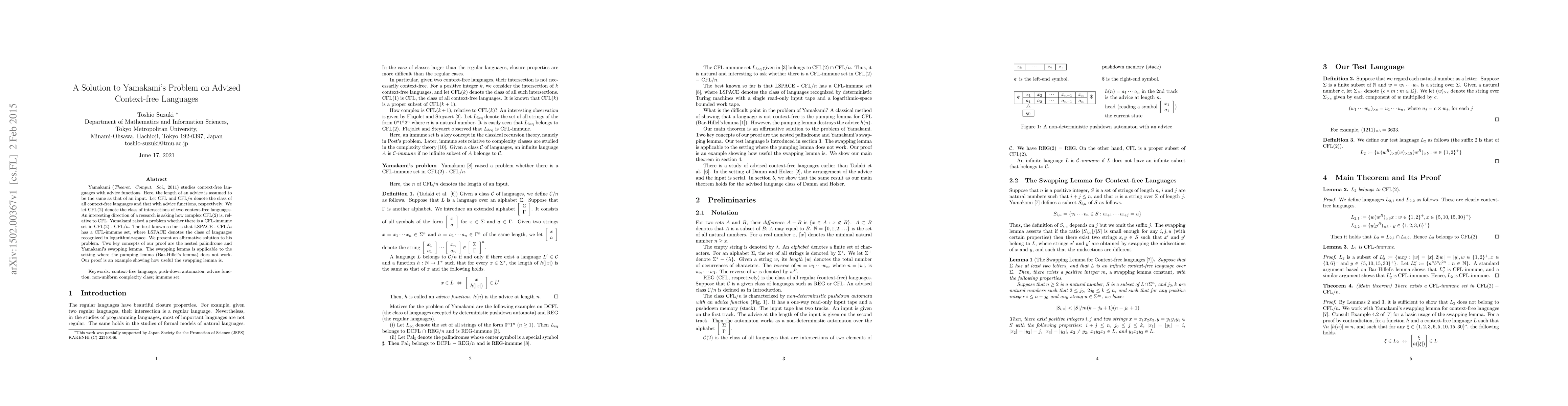 Yamakami [2011, Theoret. Comput. Sci.] studies context-free languages with advice functions. Here, the length of an advice is assumed to be the same as that of an input. Let CFL and CFL/n denote the class of all context-free languages and that with advice functions, respectively. We let CFL(2) denote the class of intersections of two context-free languages. An interesting direction of a research is asking how complex CFL(2) is, relative to CFL. Yamakami raised a problem whether there is a CFL-immune set in CFL(2) - CFL/n. The best known so far is that LSPACE - CFL/n has a CFL-immune set, where LSPACE denotes the class of languages recognized in logarithmic-space. We present an affirmative solution to his problem. Two key concepts of our proof are the nested palindrome and Yamakami's swapping lemma. The swapping lemma is applicable to the setting where the pumping lemma (Bar-Hillel's lemma) does not work. Our proof is an example showing how useful the swapping lemma is.