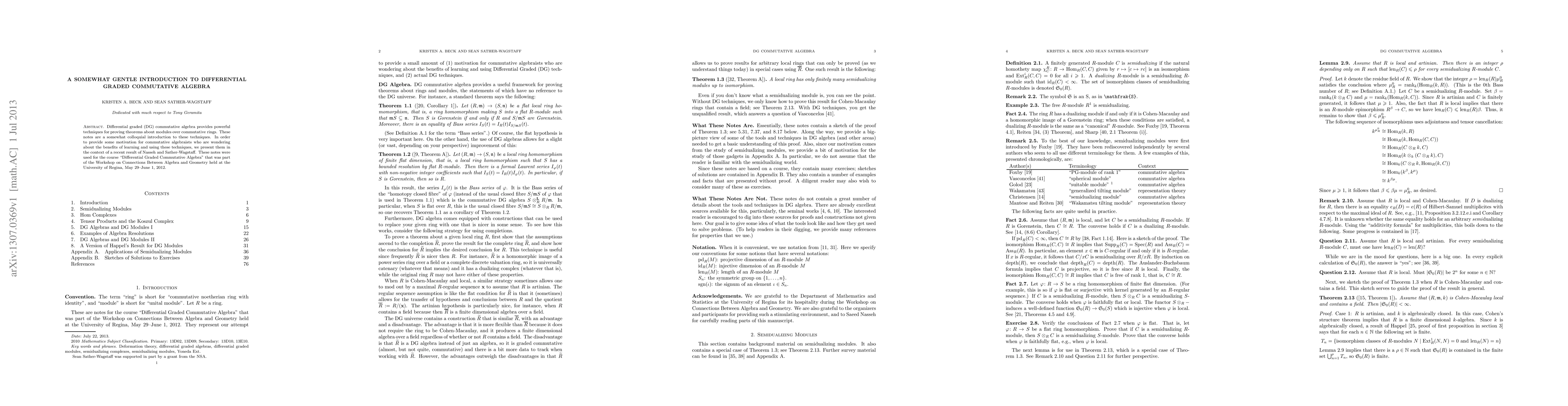 Differential graded (DG) commutative algebra provides powerful techniques for proving theorems about modules over commutative rings. These notes are a somewhat colloquial introduction to these techniques. In order to provide some motivation for commutative algebraists who are wondering about the benefits of learning and using these techniques, we present them in the context of a recent result of Nasseh and Sather-Wagstaff. These notes were used for the course "Differential Graded Commutative Algebra" that was part of the Workshop on Connections Between Algebra and Geometry held at the University of Regina, May 29--June 1, 2012.