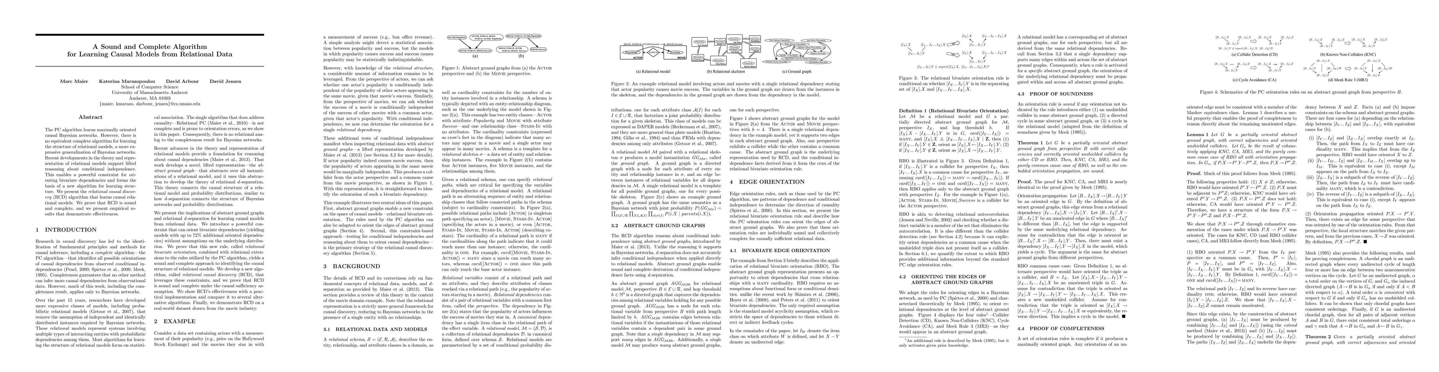 The RCD algorithm introduces a sound and complete method for learning causal structures from relational data, extending beyond Bayesian networks to more expressive relational models using lifted reasoning about conditional independence. Empirical results confirm the algorithm's effectiveness in discovering causal relationships.