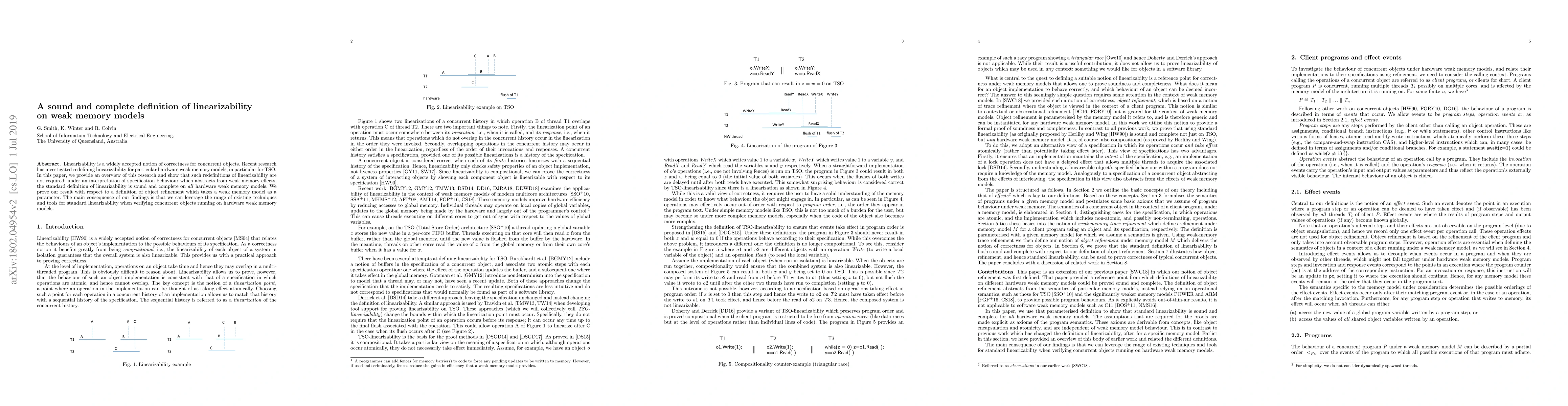 This paper demonstrates that the standard definition of linearizability remains sound and complete on weak memory models, including TSO, when abstracting from memory effects. It concludes that no redefinition is necessary, allowing existing verification techniques to be applied to concurrent objects on such hardware.