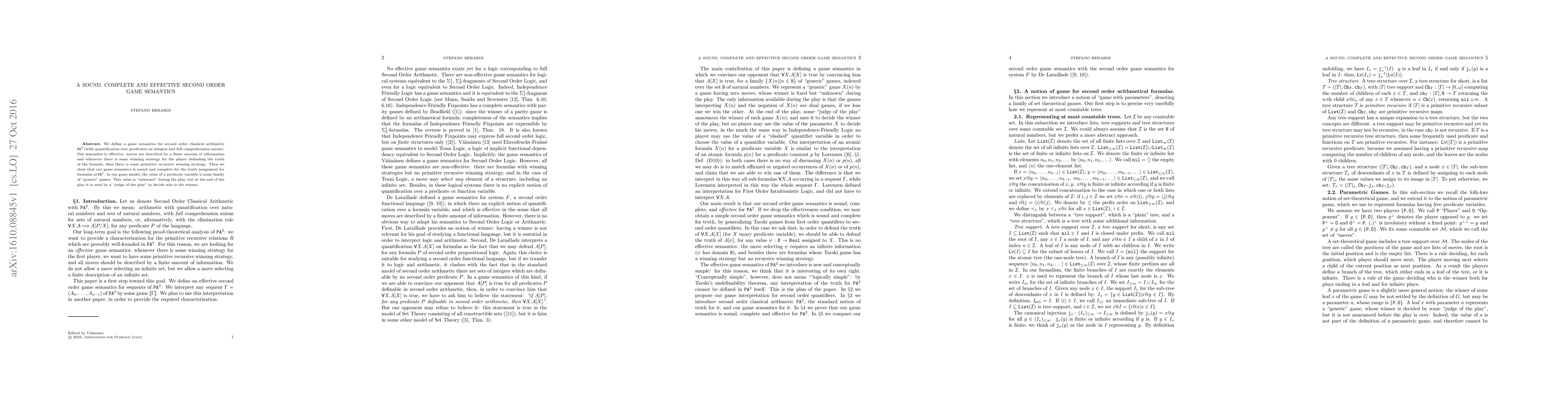This paper presents an effective second-order game semantics for classical arithmetic PA2, demonstrating soundness and completeness. The game model uses a "judge of the play" to determine winners based on "generic" games representing predicate variables, ensuring primitive recursive winning strategies when available.