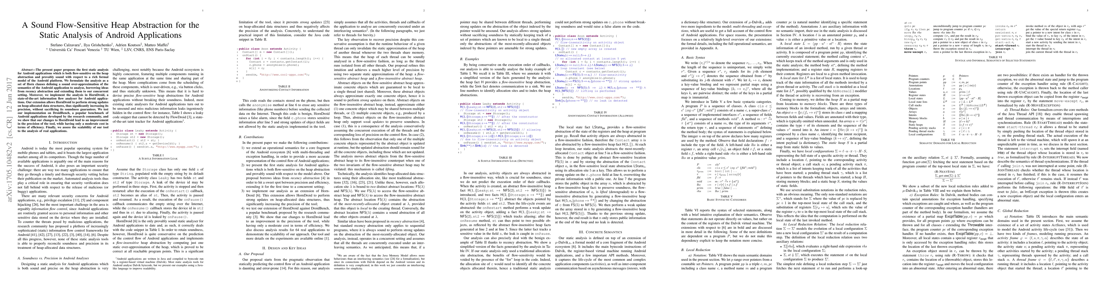 This paper introduces a sound, flow-sensitive heap abstraction for static analysis of Android applications, implemented in HornDroid, enhancing precision without compromising soundness. The analysis is tested on DroidBench, demonstrating improved precision with moderate efficiency costs.