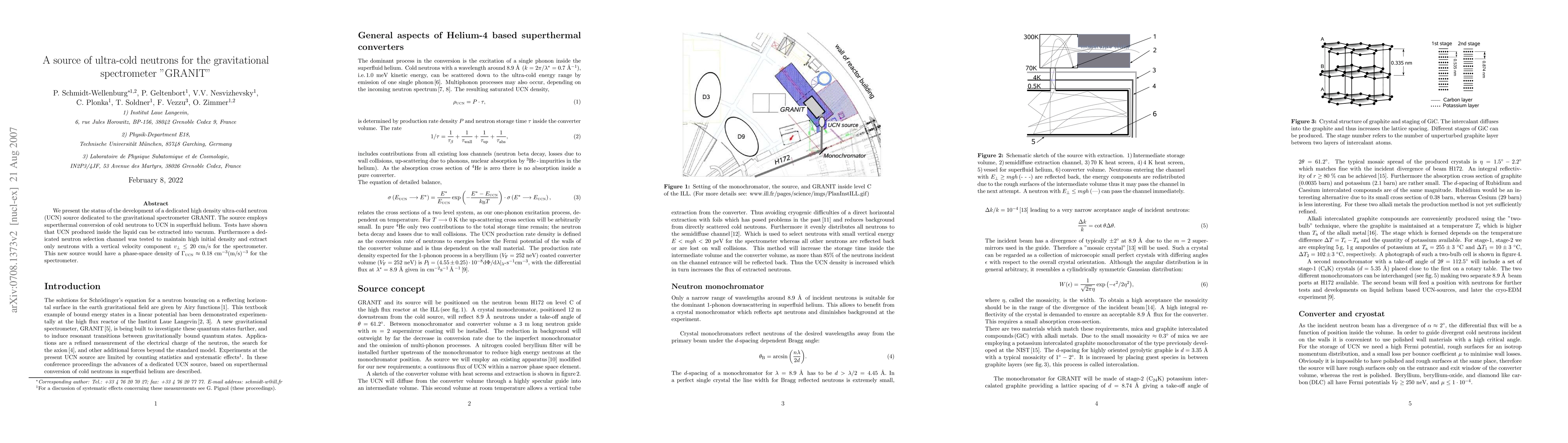 We present the status of the development of a dedicated high density ultra-cold neutron (UCN) source dedicated to the gravitational spectrometer GRANIT. The source employs superthermal conversion of cold neutrons to UCN in superfluid helium. Tests have shown that UCN produced inside the liquid can be extracted into vacuum. Furthermore a dedicated neutron selection channel was tested to maintain high initial density and extract only neutrons with a vertical velocity component 20 cm/s for the spectrometer. This new source would have a phase-space density of 0.18 cm-3(m/s)-3 for the spectrometer.