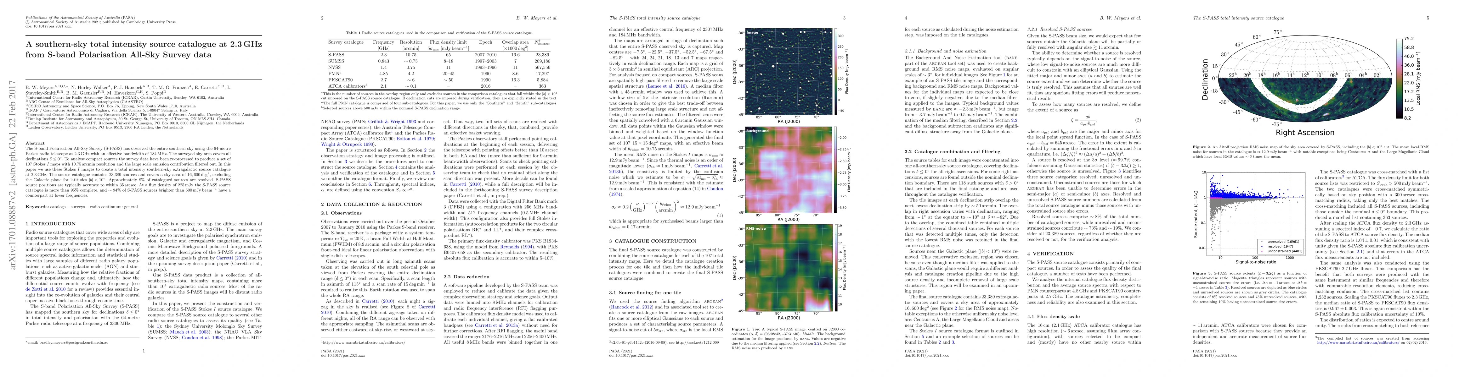 The S-band Polarisation All-Sky Survey (S-PASS) has produced a 2.3 GHz total intensity source catalogue of 23,389 extragalactic sources covering 16,600 deg$^2$ of the southern sky. The catalogue, derived from re-processed Stokes $I$ maps, is 95% complete at 225 mJy and includes accurate positions within 35 arcsec.