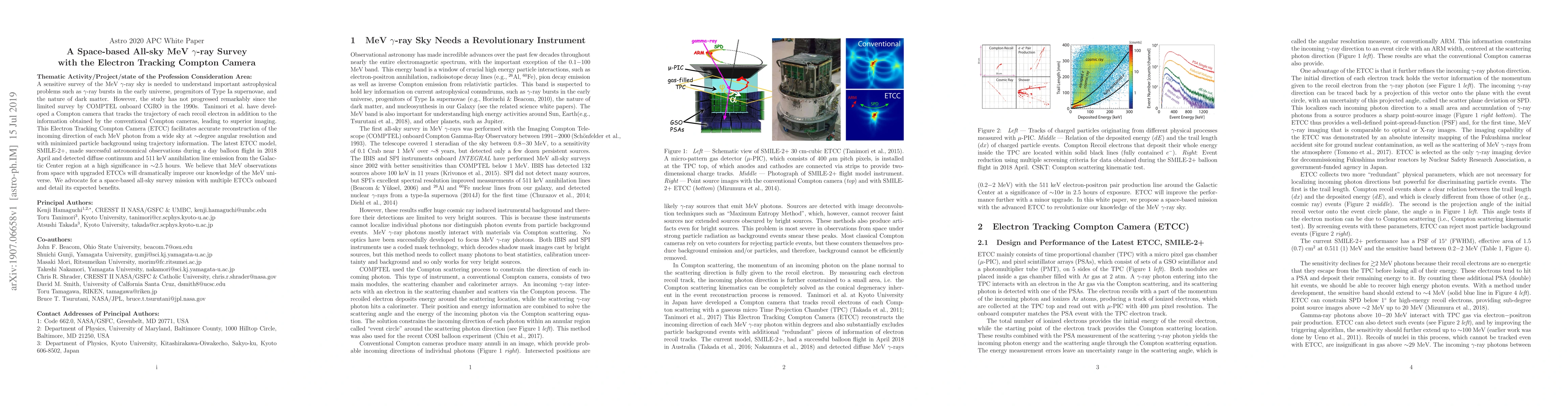 Tanimori et al. developed an Electron Tracking Compton Camera (ETCC) for a sensitive MeV gamma-ray survey, achieving superior imaging and direction reconstruction. The SMILE-2+ model detected significant gamma-ray emissions during a 2018 balloon flight, advocating for a space-based all-sky survey mission with multiple ETCCs to enhance our understanding of the MeV universe.