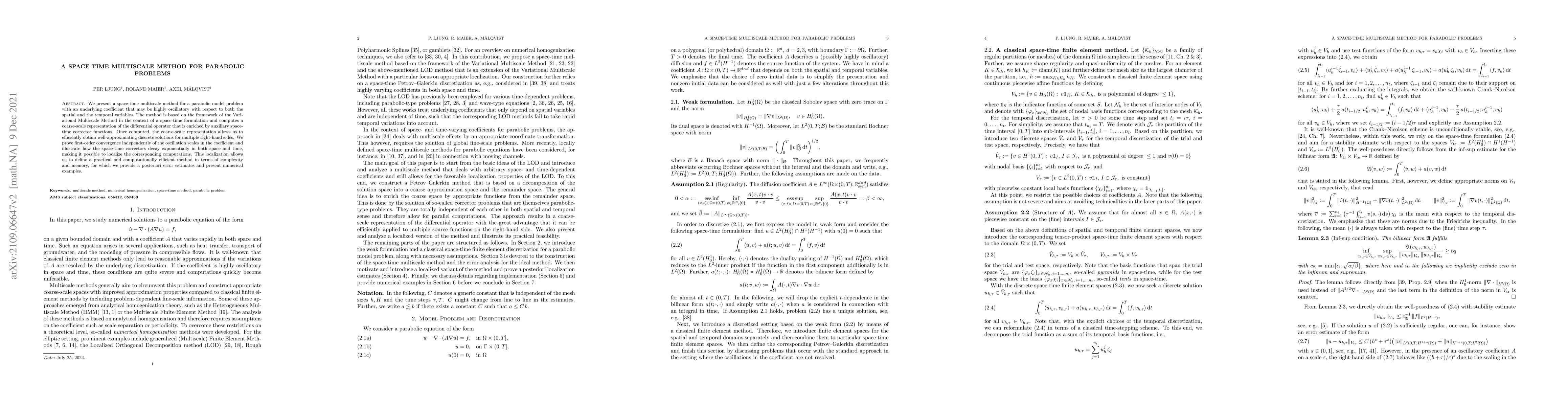This work presents a novel approach to solving parabolic PDEs using a combination of finite element methods and multiscale techniques, which has not been explored before in the literature.