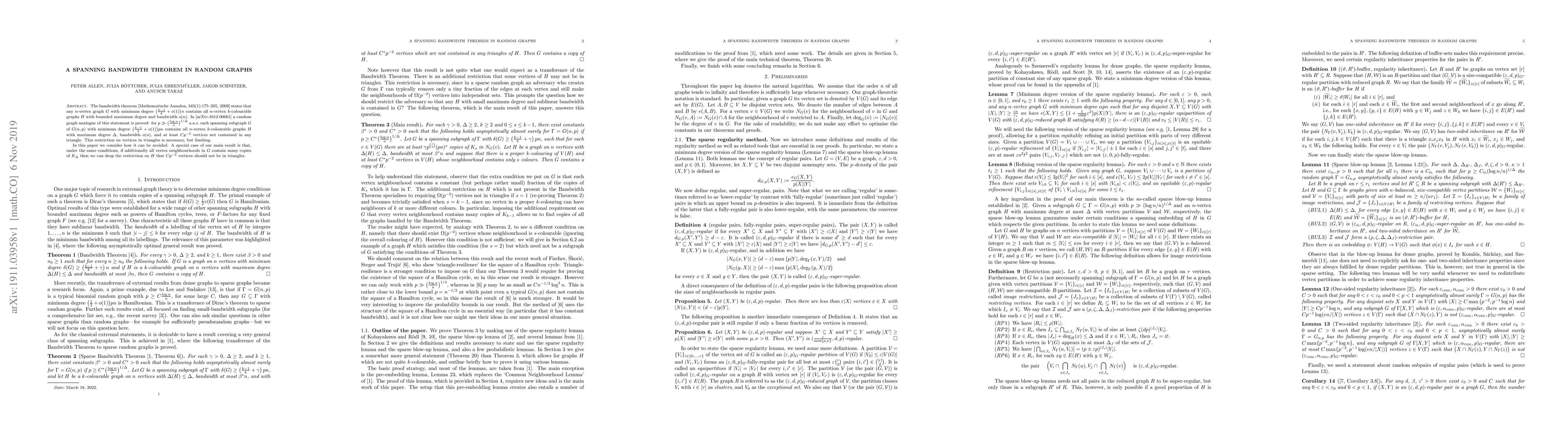 A spanning bandwidth theorem in random graphs states that a certain type of random graph contains all k-colorable subgraphs with bounded maximum degree, provided its neighborhood patterns resemble those of complete graphs.