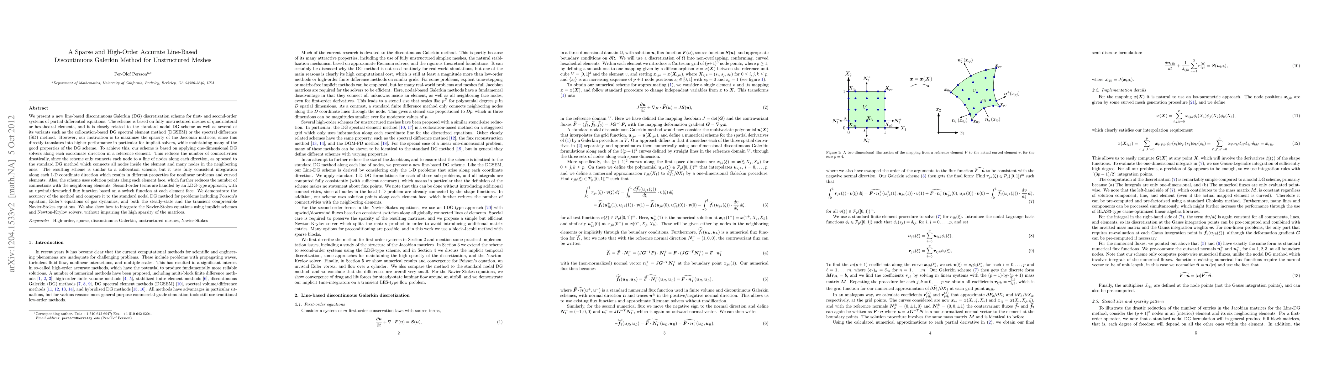 We present a new line-based discontinuous Galerkin (DG) discretization scheme for first- and second-order systems of partial differential equations. The scheme is based on fully unstructured meshes of quadrilateral or hexahedral elements, and it is closely related to the standard nodal DG scheme as well as several of its variants such as the collocation-based DG spectral element method (DGSEM) or the spectral difference (SD) method. However, our motivation is to maximize the sparsity of the Jacobian matrices, since this directly translates into higher performance in particular for implicit solvers, while maintaining many of the good properties of the DG scheme. To achieve this, our scheme is based on applying one-dimensional DG solvers along each coordinate direction in a reference element. This reduces the number of connectivities drastically, since the scheme only connects each node to a line of nodes along each direction, as opposed to the standard DG method which connects all nodes inside the element and many nodes in the neighboring ones. The resulting scheme is similar to a collocation scheme, but it uses fully consistent integration along each 1-D coordinate direction which results in different properties for nonlinear problems and curved elements. Also, the scheme uses solution points along each element face, which further reduces the number of connections with the neighboring elements. Second-order terms are handled by an LDG-type approach, with an upwind/downwind flux function based on a switch function at each element face. We demonstrate the accuracy of the method and compare it to the standard nodal DG method for problems including Poisson's equation, Euler's equations of gas dynamics, and both the steady-state and the transient compressible Navier-Stokes equations.