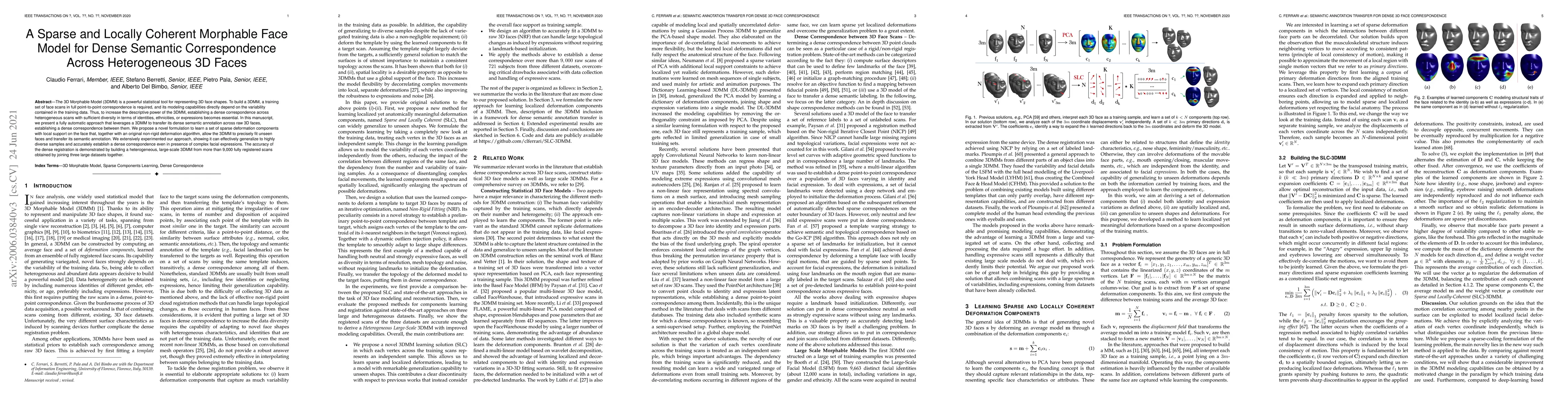 The 3D Morphable Model (3DMM) is a powerful statistical tool for representing 3D face shapes. To build a 3DMM, a training set of face scans in full point-to-point correspondence is required, and its modeling capabilities directly depend on the variability contained in the training data. Thus, to increase the descriptive power of the 3DMM, establishing a dense correspondence across heterogeneous scans with sufficient diversity in terms of identities, ethnicities, or expressions becomes essential. In this manuscript, we present a fully automatic approach that leverages a 3DMM to transfer its dense semantic annotation across raw 3D faces, establishing a dense correspondence between them. We propose a novel formulation to learn a set of sparse deformation components with local support on the face that, together with an original non-rigid deformation algorithm, allow the 3DMM to precisely fit unseen faces and transfer its semantic annotation. We extensively experimented our approach, showing it can effectively generalize to highly diverse samples and accurately establish a dense correspondence even in presence of complex facial expressions. The accuracy of the dense registration is demonstrated by building a heterogeneous, large-scale 3DMM from more than 9,000 fully registered scans obtained by joining three large datasets together.