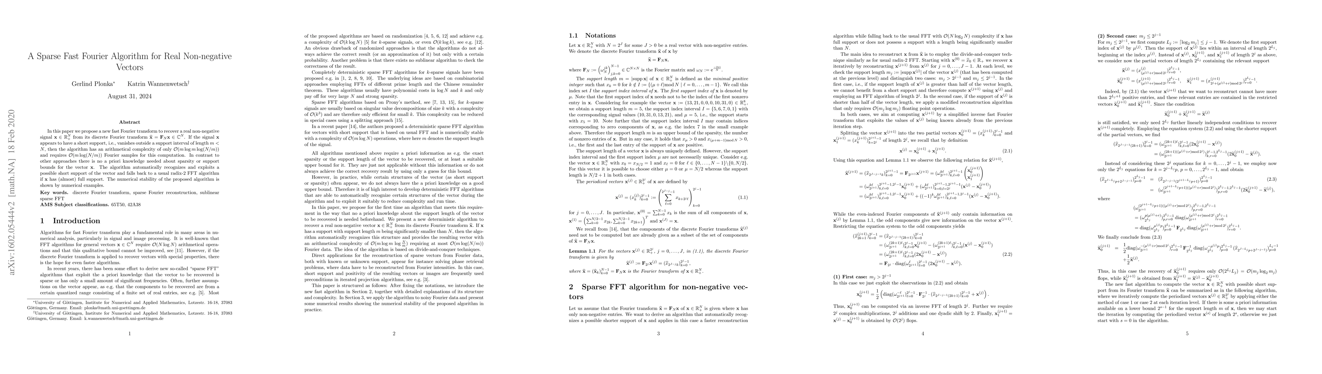 This paper presents a novel sparse Fast Fourier Transform (FFT) algorithm for real nonnegative vectors that efficiently recovers signals with short support. The algorithm operates with complexity ${\cal O}(m \log m \log (N/m))$ and requires ${\cal O}(m \log (N/m))$ Fourier samples, automatically adapting to the signal's support without prior sparsity knowledge.