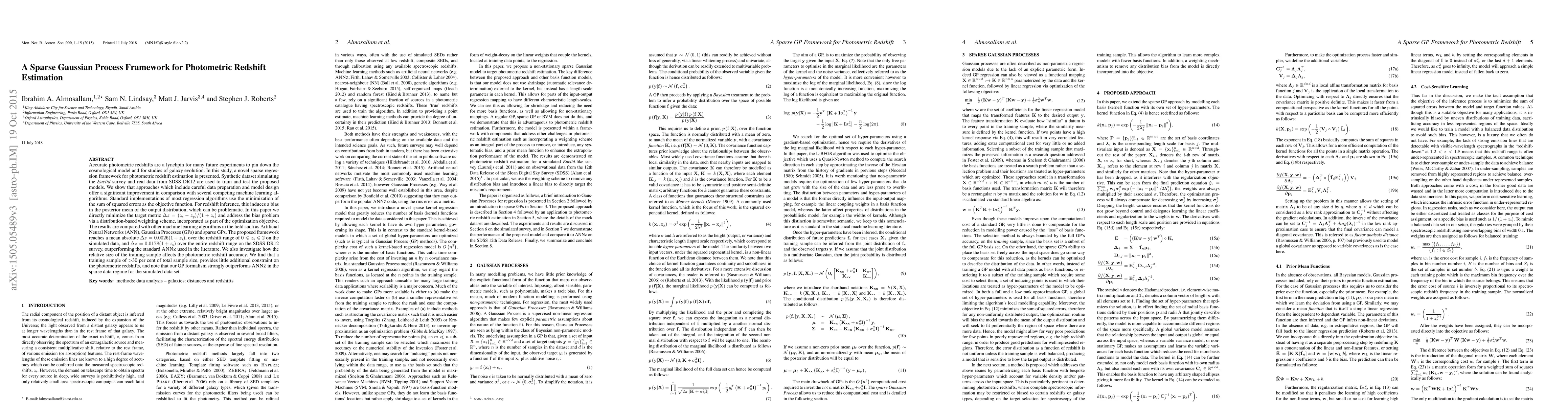 This paper introduces a novel sparse Gaussian Process framework for estimating photometric redshifts, demonstrating significant improvements over competing machine learning algorithms like ANNz, ANN, and Gaussian Processes. The method minimizes a bias-corrected error metric, achieving mean absolute errors of 0.0026(1+z) on simulated data and 0.0178(1+z) on the SDSS DR12 survey, outperforming standard ANNz, especially in sparse data scenarios.