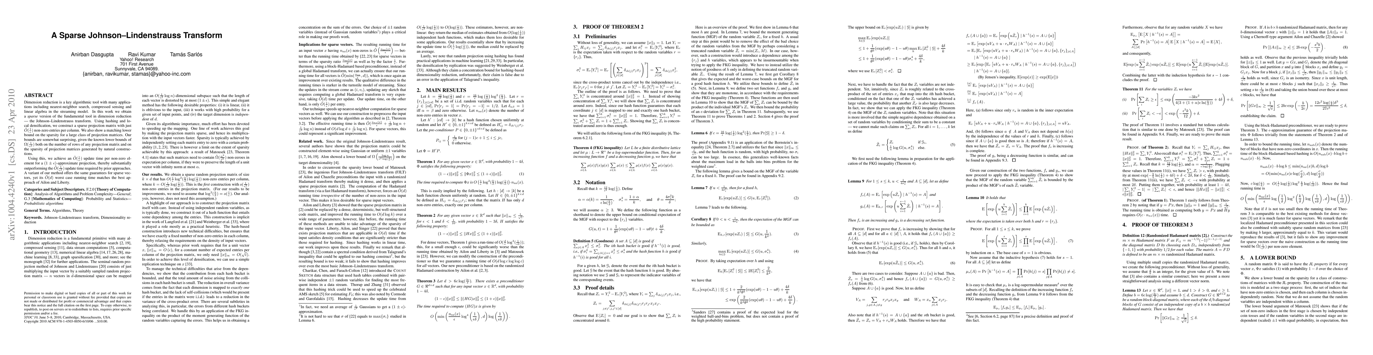 This paper presents a sparse version of the Johnson-Lindenstrauss transform, achieving dimension reduction with significantly fewer non-zero entries per column, and demonstrates an improved update time for approximate projections compared to prior methods. The authors also establish a matching lower bound on the sparsity for a broad class of projection matrices.