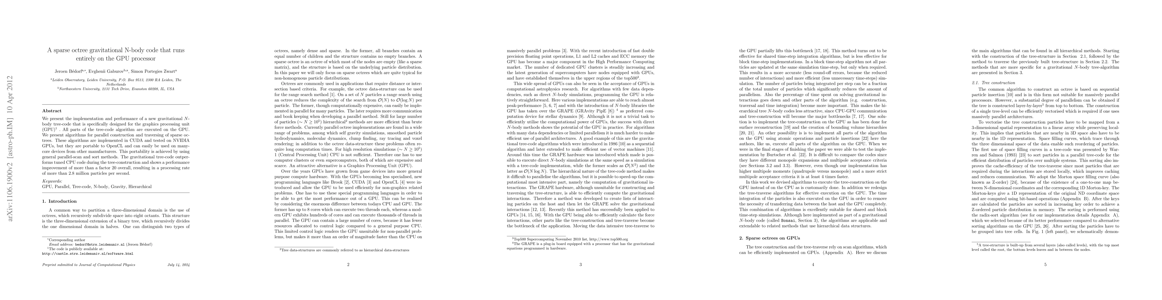 This paper introduces a GPU-based parallel algorithm for constructing and traversing sparse octrees, implemented in CUDA, which significantly outperforms CPU-based methods in gravitational N-body simulations, achieving a processing rate of over 2.8 million particles per second. The code is publicly available and can be adapted to other many-core devices.