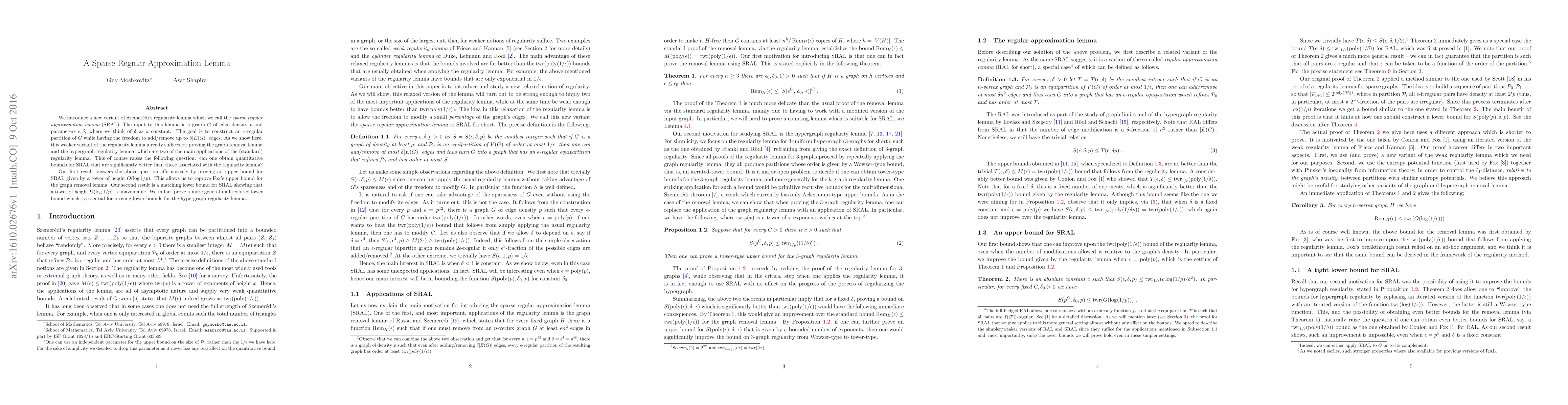 We introduce a new variant of Szemer\'edi's regularity lemma which we call the "sparse regular approximation lemma" (SRAL). The input to this lemma is a graph $G$ of edge density $p$ and parameters $\epsilon, \delta$, where we think of $\delta$ as a constant. The goal is to construct an $\epsilon$-regular partition of $G$ while having the freedom to add/remove up to $\delta |E(G)|$ edges. As we show here, this weaker variant of the regularity lemma already suffices for proving the graph removal lemma and the hypergraph regularity lemma, which are two of the main applications of the (standard) regularity lemma. This of course raises the following question: can one obtain quantitative bounds for SRAL that are significantly better than those associated with the regularity lemma? Our first result answers the above question affirmatively by proving an upper bound for SRAL given by a tower of height $O(\log 1/p)$. This allows us to reprove Fox's upper bound for the graph removal lemma. Our second result is a matching lower bound for SRAL showing that a tower of height $\Omega(\log 1/p)$ is unavoidable. We in fact prove a more general multicolored lower bound which is essential for proving lower bounds for the hypergraph regularity lemma.