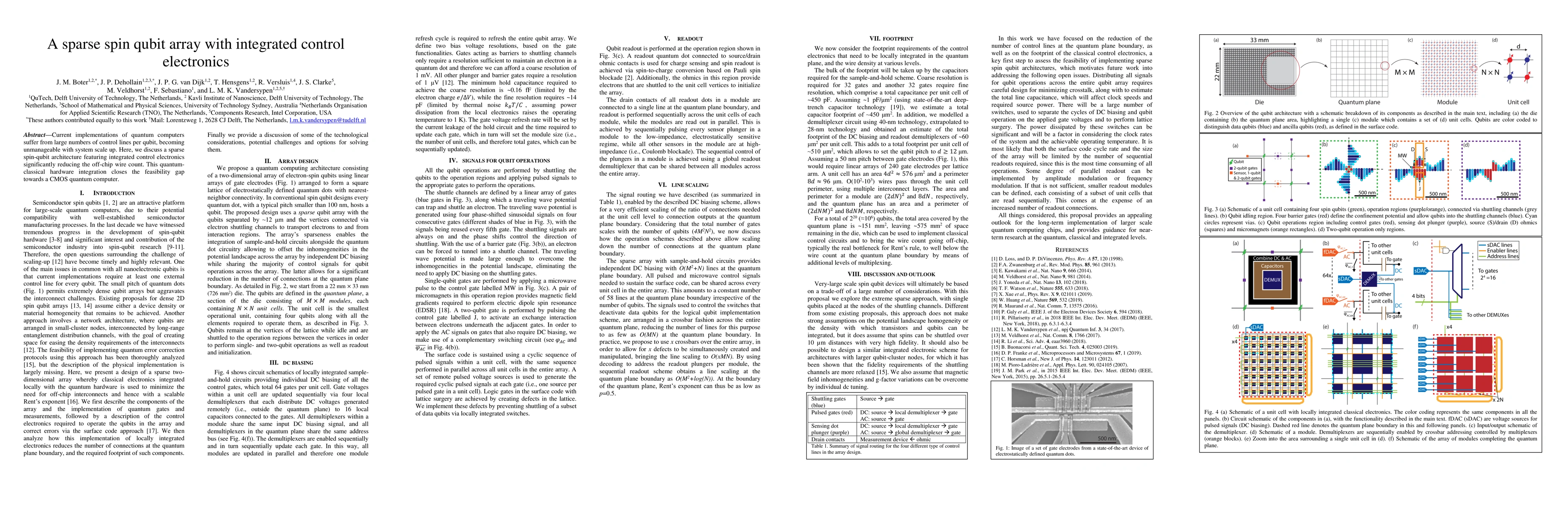 This paper proposes a sparse spin-qubit array with integrated control electronics to reduce the number of control lines per qubit, addressing scalability issues in quantum computing and bringing CMOS quantum computers closer to feasibility.