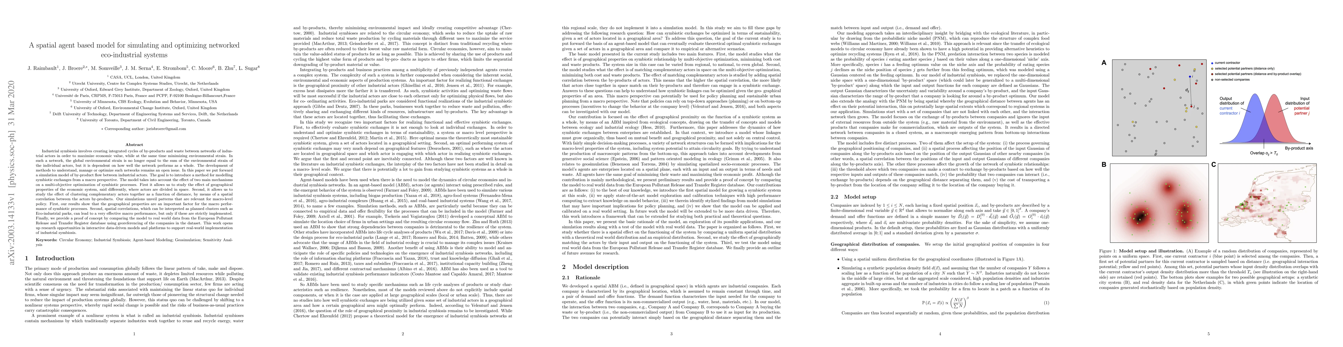 The paper presents a spatial agent-based model to simulate and optimize eco-industrial networks, focusing on by-product exchange. Key findings indicate that geographical properties significantly impact macro-level symbiotic process performance, and planned clusters like Eco-industrial parks can enhance effectiveness when strictly implemented. The model's validity is demonstrated through comparison with real-world data from the European Pollutant Release and Transfer Register.