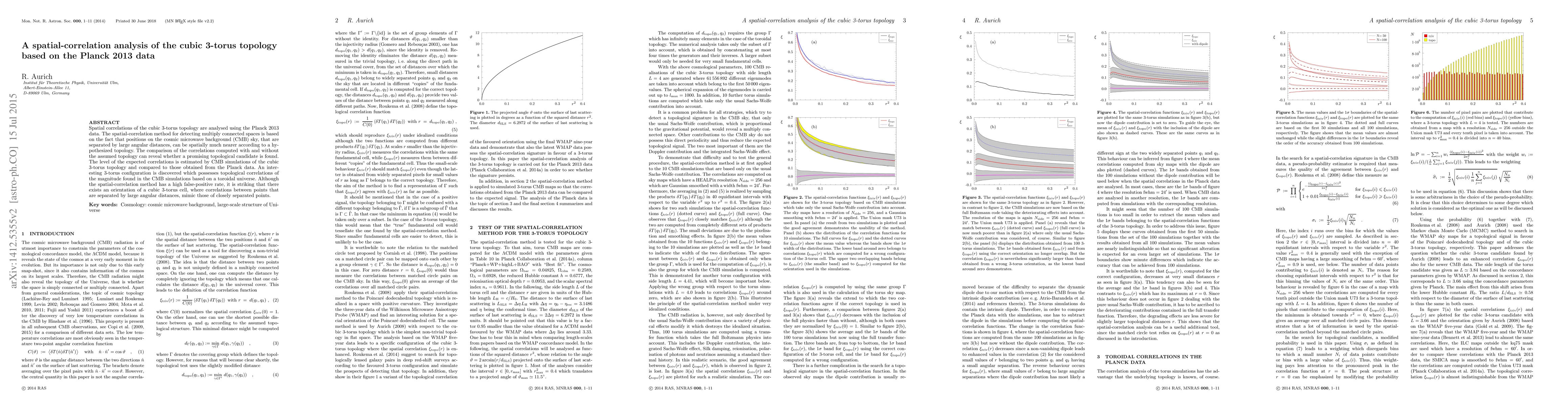 Spatial correlations of the cubic 3-torus topology are analysed using the Planck 2013 data. The spatial-correlation method for detecting multiply connected spaces is based on the fact that positions on the cosmic microwave background (CMB) sky, that are separated by large angular distances, can be spatially much nearer according to a hypothesized topology. The comparison of the correlations computed with and without the assumed topology can reveal whether a promising topological candidate is found. The level of the expected correlations is estimated by CMB simulations of the cubic 3-torus topology and compared to those obtained from the Planck data. An interesting 3-torus configuration is discovered which possesses topological correlations of the magnitude found in the CMB simulations based on a toroidal universe. Although the spatial-correlation method has a high false-positive rate, it is striking that there exists an orientation of a cubic 3-torus cell, where correlations between points that are separated by large angular distances, mimic those of closely separated points.