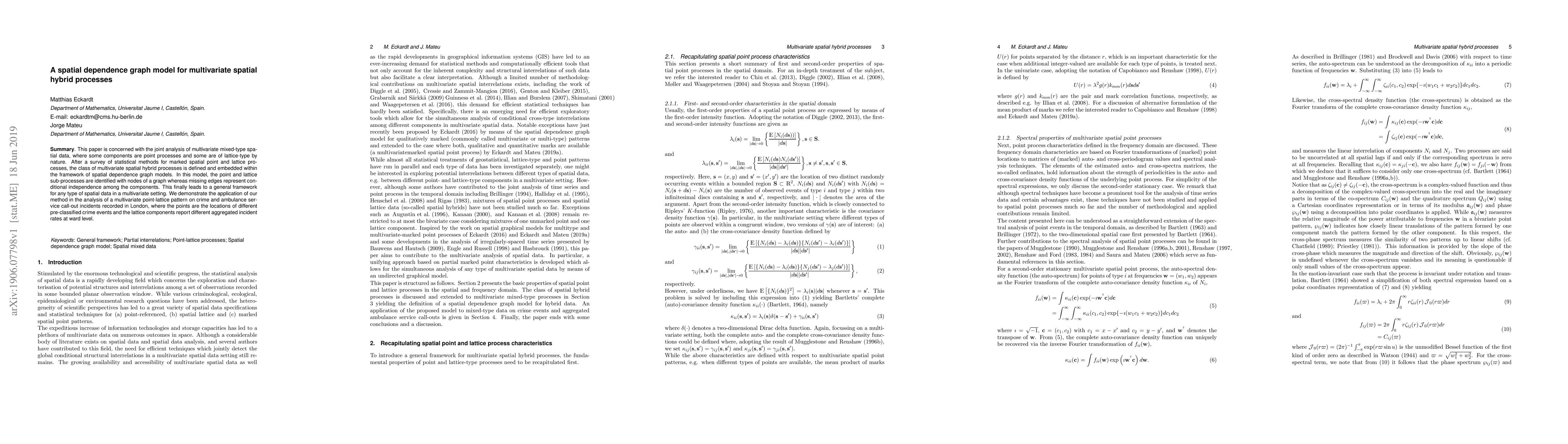This paper introduces a spatial dependence graph model for analyzing multivariate spatial hybrid processes, combining point and lattice data. The model uses a graph where nodes represent sub-processes and edges indicate conditional dependencies, applied to analyze crime and ambulance service data in London.