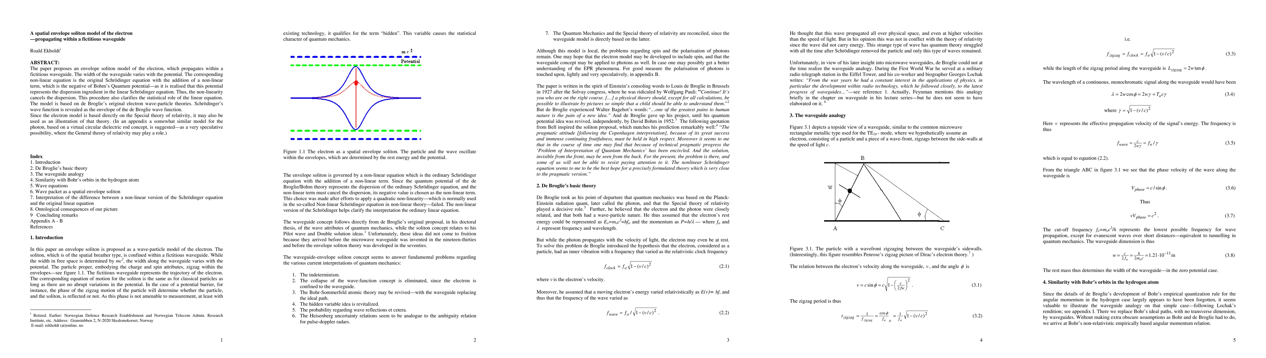 This research proposes an envelope soliton model of an electron propagating within a variable-sized waveguide influenced by a fictitious Bohm's Quantum potential, illustrating the connection between de Broglie's concept and the Special theory of relativity.